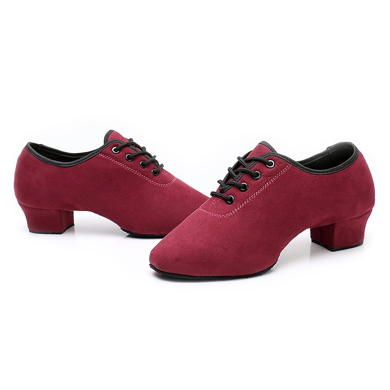 Highlights [Material] Crafted from high-quality synthetic materials with a soft interior lining, these dance shoes provide both durability and comfort, ensuring they are breathable and comfortable for extended wear. The synthetic material gives them a polished appearance suitable for any dance environment. [Fit and Style] The shoes feature a classic Oxford lace-up design that ensures a secure fit. Available in rich shades such as black, dark red, and brown, these shoes offer versatile styling for different occasions. The unisex design caters to both men and women dancers. [Design Highlights] These shoes are designed with a split sole for flexibility and ease of movement, allowing dancers to perform with grace and precision. The thick heel provides added stability and balance, essential for both practice and performance. The closed toe design offers protection and a sleek look. [Occasion] Ideal for ballroom dancing, practice sessions, and indoor training events, these shoes offer a perfect blend of style and functionality, making them suitable for dancers of all levels who seek elegance and performance. [Size Range] Available in various sizes from 34 to 45, these shoes are designed to fit a wide range of foot sizes, ensuring that every dancer finds their perfect fit. The size range is crafted to accommodate adult wearers comfortably.