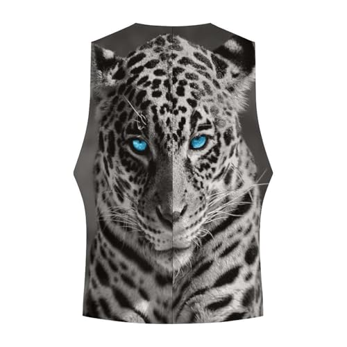 sizzling ! Leopard with Blue Eyes Men's Suit Vest Slim Fit V-Ncek Waistcoat Business Casual Vest