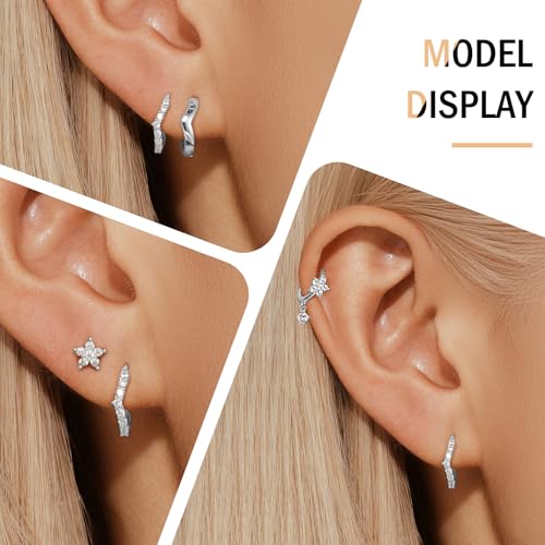 GEORGE · SMITH Sterling Silver Stud Earrings for Women, Silver Flower Earrings for Multiple Piercing, Flower Stud Earrings Set for Women Jewelry Gift 6