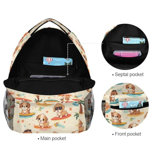 Surfboard Dog Puppy Palm Tree Backpack for School Boys Girls Adults Kids Bookbag Laptop Bag 15L 7