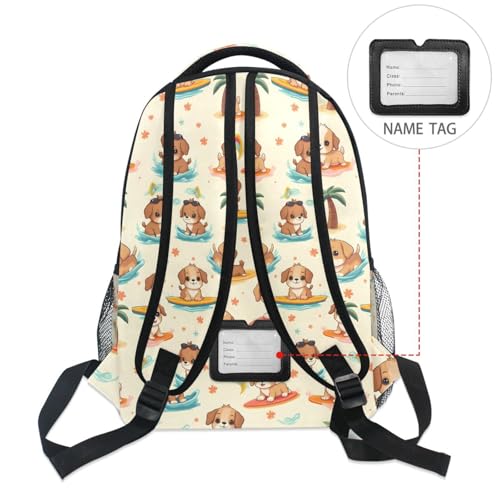Surfboard Dog Puppy Palm Tree Backpack for School Boys Girls Adults Kids Bookbag Laptop Bag 15L 4