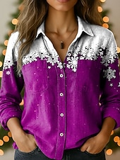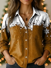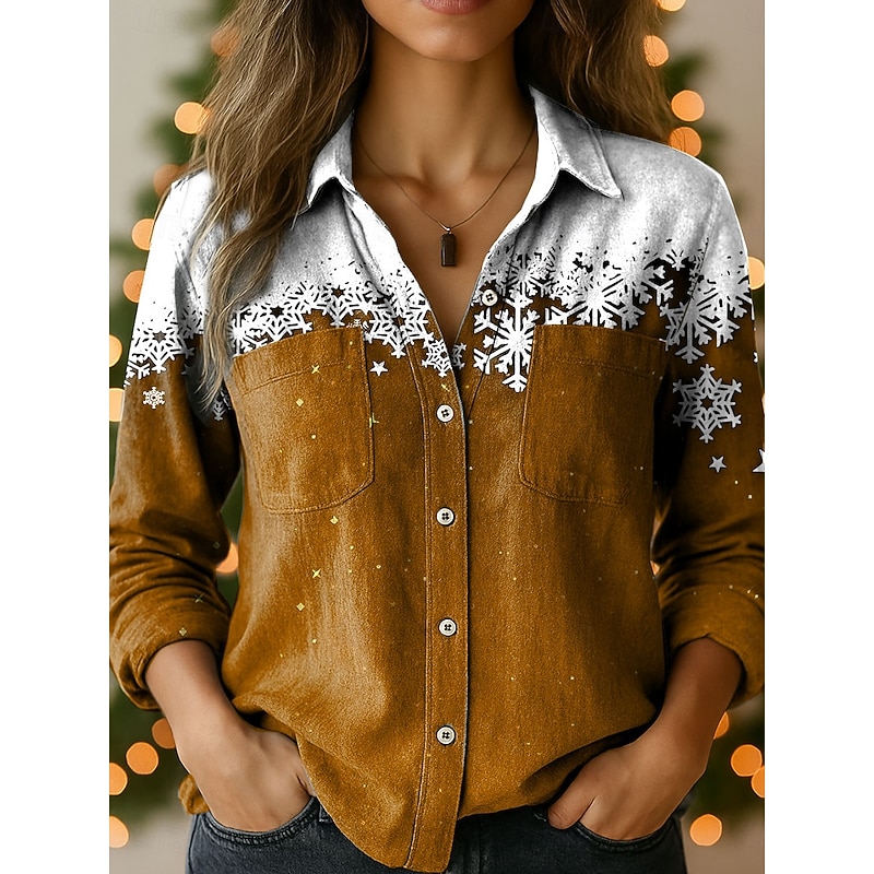 More information about Christmas Women's Shirt Graphic Snowflake Elegant Vintage Tropical Long Sleeve Shirt Collar Regular Tops Daily Holiday Pocket Buttons Print Red Blue Purple Brown Green Spring Fall Winter