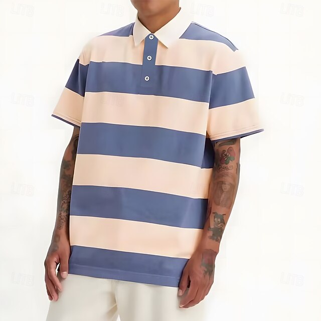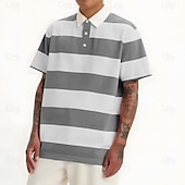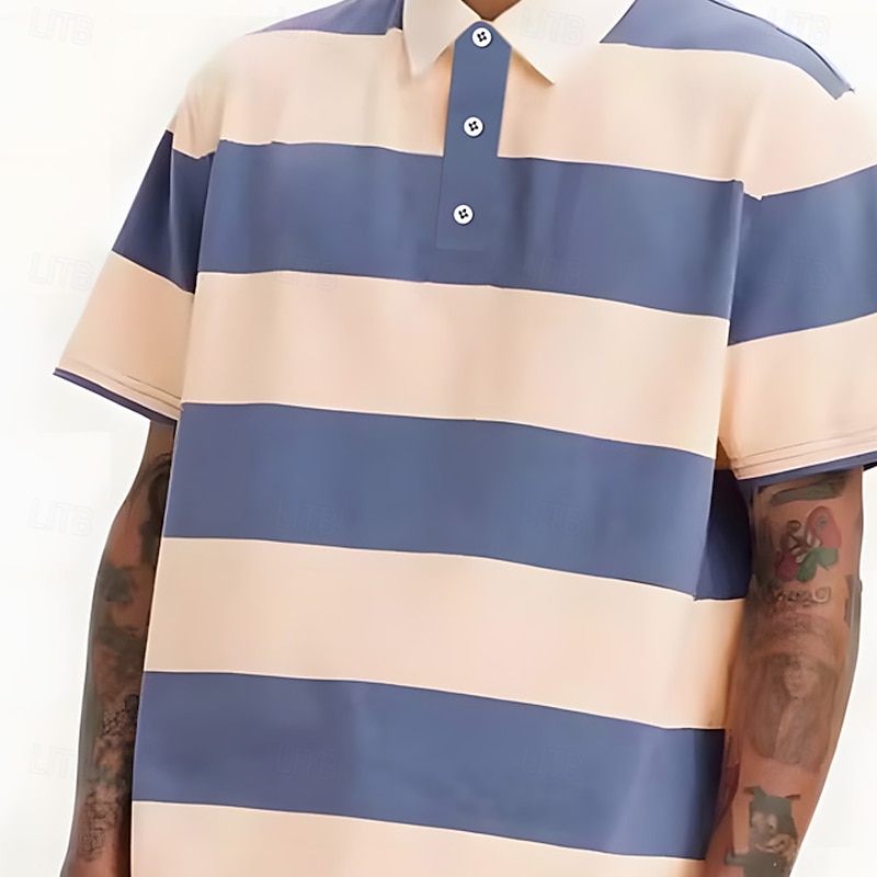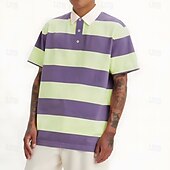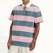 More information about Men's Horizontal Stripes Rugby Polo Short Sleeve Polo Shirts Collared Shirts Casual School Outdoor Athleisure Daily Wear Buttons 3D Print Summer Pink Blue Purple