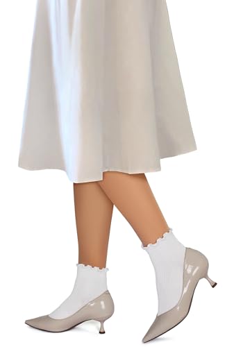 • 【US size】Our cotton ruffle socks women fit for feet Size 5-10, With the loose ruffle cuff design, the women's frilly socks will not affect blood circulation in your legs, friendly for women managing edema, diabetes, neuropathy, or during pregnancy.