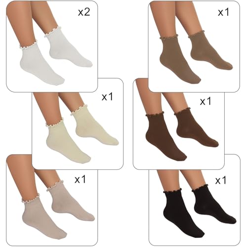 Women’s Ruffle Socks, Turn-Cuff Frilly Crew Socks for Women Girls Cotton Ankle High Mid Calf Socks 7 Pairs 6