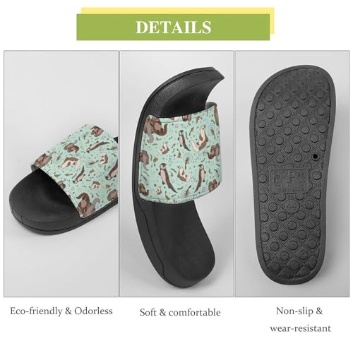 Sea Otters Green Womens Slide Sandals Non Slip Summer House Slippers for Girls Slip-on Flip Flops 4