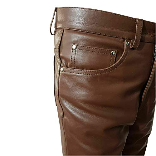 Men's Real Black & Brown Cow Leather Sleek & Sexy Style 501 Jeans Motorcycle Biker Pants Trouser 5