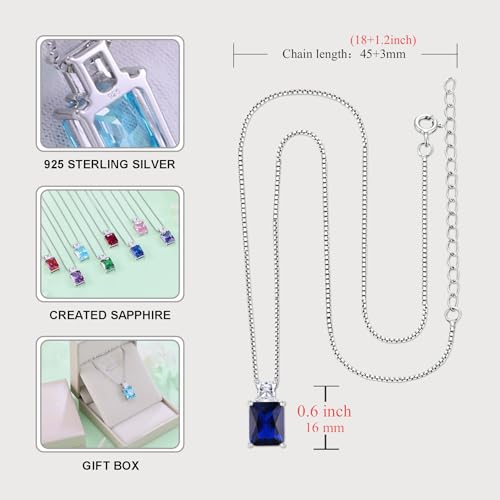 Material: Sterling SilverMetal type: Sterling SilverChain type: BoxGem type: Created SapphireItem type name: Pendant NecklacesBrief content visible, double tap to read full content. Full content visible, double tap to read brief content. Bundles with this item Previous page STARCHENIE 925 Sterling Silver Necklace Earrings for Women Princess & Emerald Cut Pendant September Birthstone Created Sapphire Jewelry Set -5% $104.99 Was: $109.98 Next page See all bundlesStarchenie Design - This birthstone necklace is elegance and sophistication. Made for a comfortable yet dazzling look certain to complement any outfit choice.premium - Crafted with high-quality 925 sterling silver, coated with Rhodium for durability and rich finish. Hypoallergenic and nickel-free perfect for sensitive skin.Pendant Size - High: 16mm(0.6 inch), set with 8x10mm emerald-cut Created Sapphire. Chain length: 45+3 cm (17.71 +1.18 inch) extension chain.Gifting - Come with charming jewelry box. Also a great gift for your wife, girlfriend or romantic partner for various occasions like Birthday, Graduation day, Anniversary, Valentine’s day or Mother’s day.We are committed to provide customers the better product and the most friendly service, If you have any questions, please feel free to contact us. Perfect for everyday use. High quality materials and excellent craftsmanship ensure long-lasting durability.