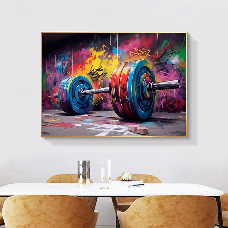 Hand Painted Gym Canvas Wall Art Barbell Graffiti Weightlifting Decor Sport Motivational  Fitness Wall Art Home Decor Large No Frame 1