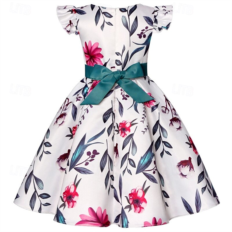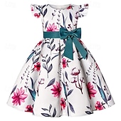 More information about Kids Girls' Party Dress Flower Sleeveless Performance Birthday Ruffle Tie Knot Beautiful Sweet Cotton Knee-length Party Dress Swing Dress A Line Dress Summer 4 years+ Pink Red Royal Blue