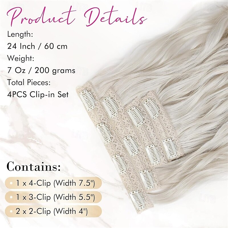 $26.99 - Clip in Hair Extensions 4PCS Blonde Hair Extensions 24 Thick Long Beach Waves hair extensions HE003 Invisible Lace Weft Natural Soft Hairpieces for Women Platinum Blonde 2025. Shop for cheap Clip in Extensions online? Buy at lightinthebox.com on sale today!