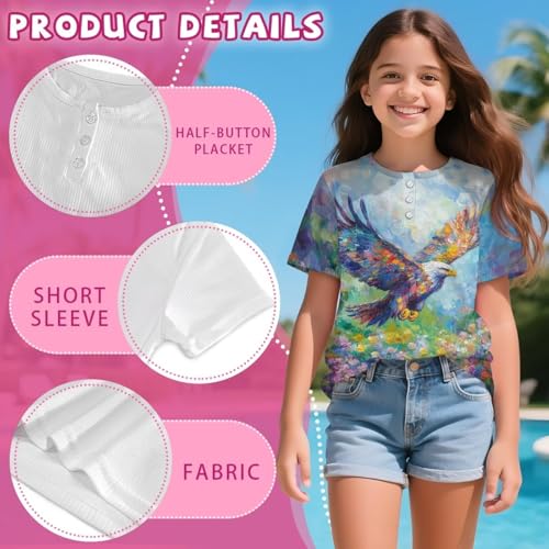 • GIRLS HENLEY SHIRTS WITH BUTTON : Kids T Shirt for girls is made of 95% polyester and 5% spandex, extra soft and comfortable, breathable and quick-dry, light and stretchy, loose fit, thin kids Tshirts are suitable for summer