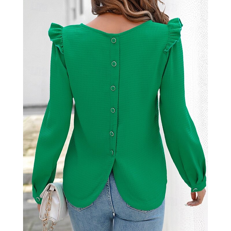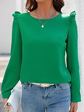 More information about Women's Texture Blouse Blouse Plain Modern Casual Long Sleeve Crew Neck Regular Tops Daily Holiday Ruffle Green Fall