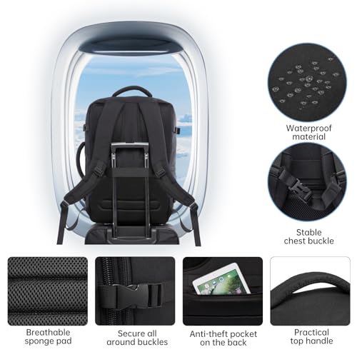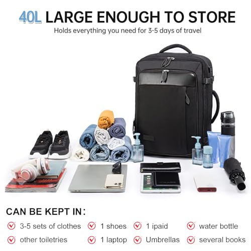 More information about Travel Laptop Backpack, Carry on Backpack with USB Charging Port, Extra Large 15-inch Waterproof Backpack for Men Women, Black