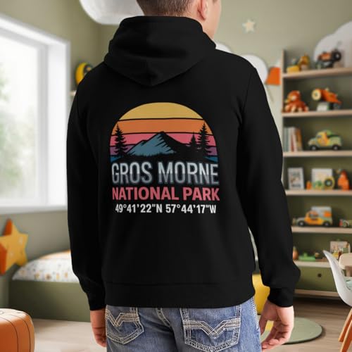 HOT ! Kids Gros Morne National Park with GPS Location Boys Girls Lightweight Kangaroo Pocket Fleece Hoodies