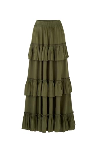 Women's Solid 3-Layer Frill Maxi Skirt – Long Flowing Viscose Skirt, Tiered Boho Style for Casual & Dressy Wear