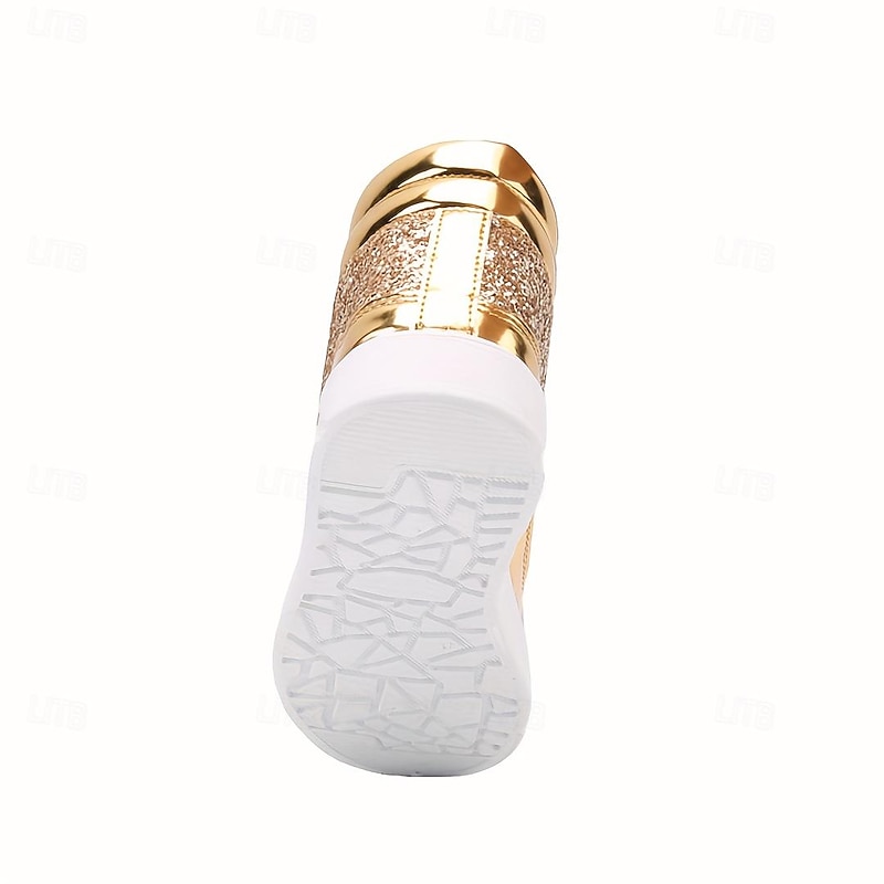 Highlights [Fabric Description] : Crafted with high-quality PU for both the upper and lining, these Silver Glitter High-Top Sneakers offer a durable and stylish wear. The fabric is enhanced with sparkling glitter embellishments and reflective metallic accents, providing a standout look that catches the eye under various lighting. [Fit and Style] : With a fashionable high-top design, these sneakers add both support and a trendy edge to any outfit. The round toe shape and thick, sturdy rubber sole ensure comfort and durability, making them perfect for everyday wear or longer outings. [Design Highlights] : Featuring shimmering silver glitter and reflective metallic finishes, these sneakers are designed to make a bold fashion statement. The matching silver laces not only offer functionality but also complement the overall glamour and elegance of the shoes. [Occasions] : Ideal for outdoor activities, parties, or casual outings, these sneakers are perfect for those who enjoy a sporty yet glamorous style. Whether you're hitting the streets for a stylish stroll or attending a lively event, these sneakers provide both style and comfort. [Size Range] : Available in a range of sizes from US7 to US10.5 (EU39 to EU43), these sneakers cater to a variety of fitting preferences, ensuring a comfortable and personalized fit for every fashion-forward individual.