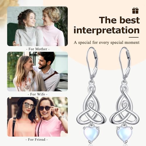 Celtic Knot Earrings 925 Sterling Silver Moonstone Irish Celtic Knot Dangle Hoop Earrings Leverback Jewelry Birthday Christmas Gifts 5