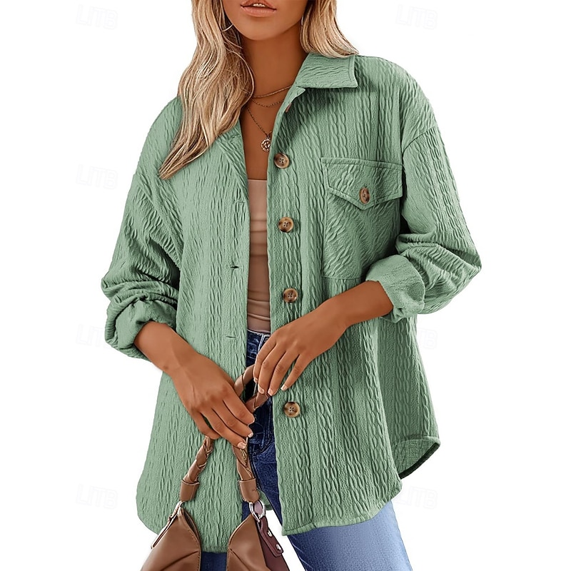 More information about Women's Shirt Texture Blouse Blouse Plain Modern Casual Long Sleeve Shirt Collar Regular Tops Daily Holiday Going out Buttons Asymmetric Hem Black Pink Green Khaki Gray Fall