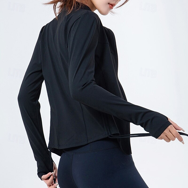 Women's Yoga Jacket Lightweight Full Zip Long Sleeve Sports Solid Color Top For Gym Athletic Sports Slim Activewear 14