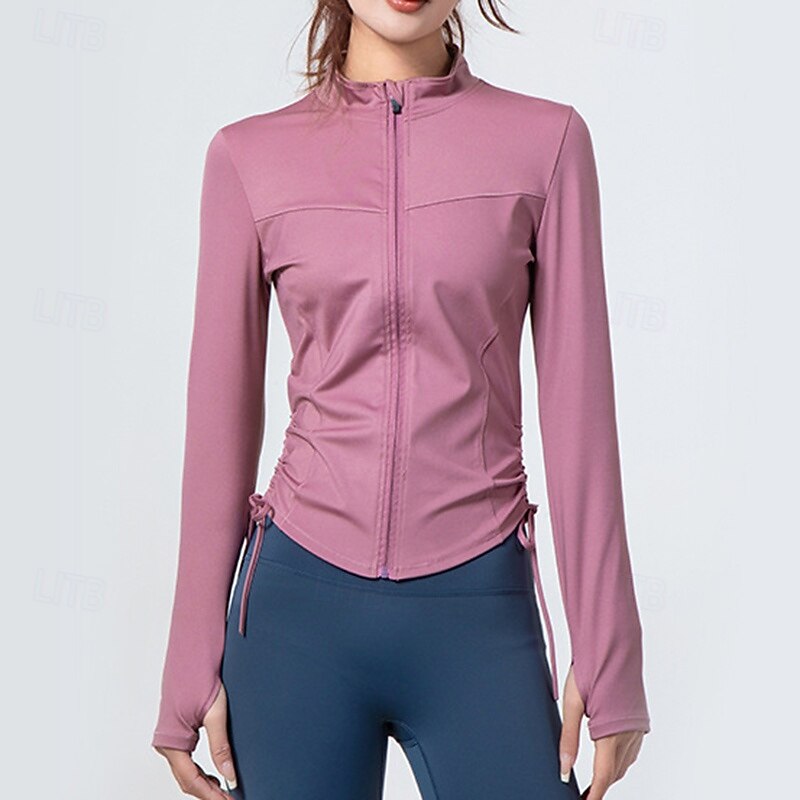 Women's Yoga Jacket Lightweight Full Zip Long Sleeve Sports Solid Color Top For Gym Athletic Sports Slim Activewear 9