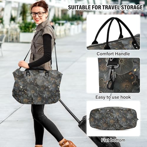 Large Travel Duffel Luggage flower Leaf Sequin Graphite Gold Black Weekender/Overnight Duffel with Toiletry Bag for Gym Foldable bolsa para