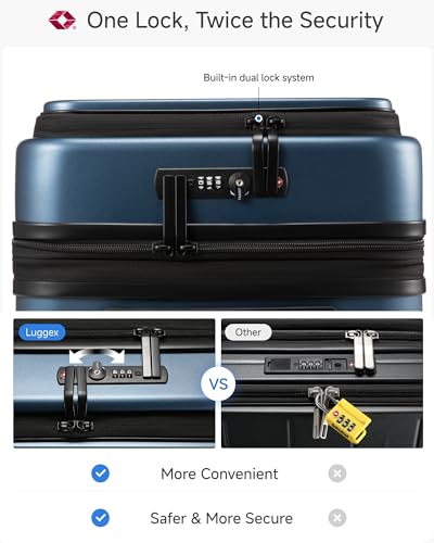 • 【LUGGEX's Commitment to Quality】LuggeX blue suitcase comes with a free 3-year protection plan. Our dedicated customer service team is ready to assist you within 12H if you encounter any issues with our reliable hard case luggage.