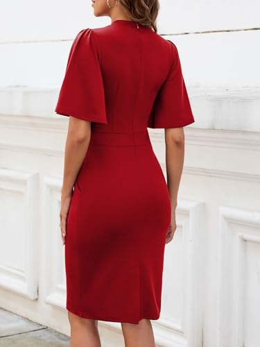 More information about Mokayee Womens Collar Ruffle Sleeve Bodycon Church Cocktail Pencil Midi Dresses with Pockets