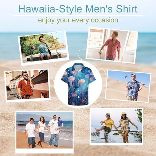 Fabric type: Polyester fiberCare instructions: Machine WashOrigin: ImportedClosure type: ButtonMaterial: 95% Polyester,5% Spandex. Soft,skin friendly, breathable fabric.Mens lapel with pocket short sleeved shirt. Tropical Shirts. Button-Down: Easily take on and off, perfect for warm weather. Jellyfish Art Print: distinctive design that will make you stand out from the crowd. The shirts are made from high-quality materials and are designed to last. They come in a variety of sizes so that you can find the perfect fit.Make a statement with our Hawaiian Beach Shirts for Men, adorned with eye-catching jellyfish art prints. The button-down shirts are perfect for a day out on the beach.Matched: The mens summer shirts are perfect matched with shorts, Jeans,beach pants etcYou can also wear the hawaiian shirt with a t-shirt inside,you will be the eye-catcher.Size: Please see our SIZING INFO below for a right fit. Perfect for everyday use. premium materials and excellent craftsmanship ensure long-lasting durability.