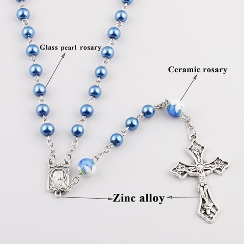 • Material: The pink rosary beads are made of pearl imitation glass and white rosary are made of ceramic; the Lourdes Medal, Crucifix and chain are zinc alloy. Smooth surface, fine workmanship, strong and durable.