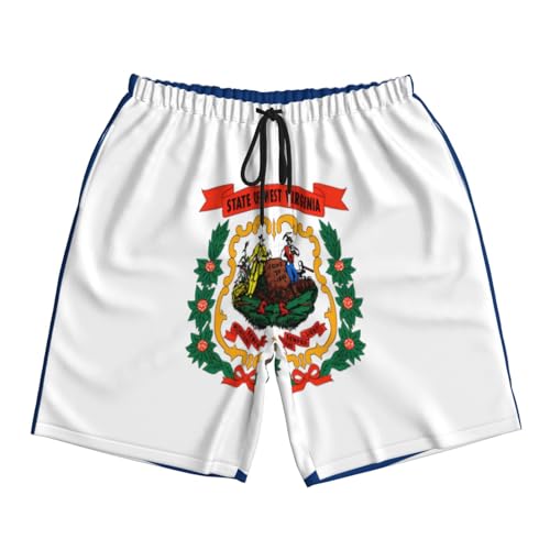 HOT ! West Virginia Flag Men Beach Pants – Swim Trunks for Men,Quick-Dry and Comfortable, Suitable for Beach, Surf, and Everyday Wear Black