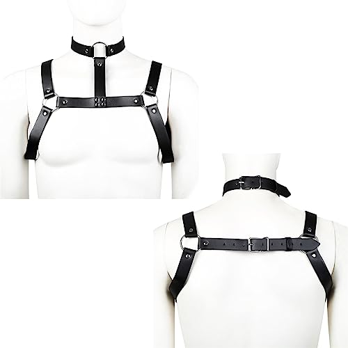 • 💕[High Quality PU Leather] Men's punk leather shoulder belt are made of high quality PU leather and stainless steel, soft and non-toxic. Strong and durable material, comfortable and flexible to wear, makes you look more attractive and unique.