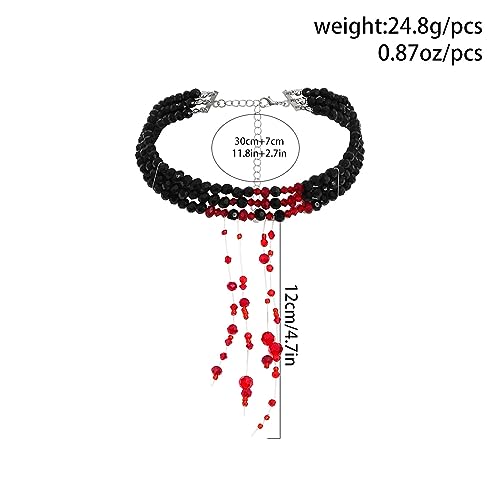 HOT ! Gothic Blood Drop Fringe Necklace,Vintage Crystal Blooddrip Choker Punk Style Multi-layered Pearl Beaded Necklaces Goth Vampire Clavicle Halloween Jewelry Decorations