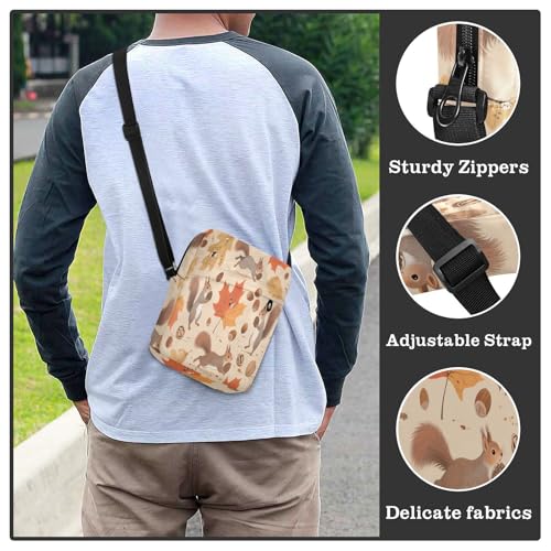 messenger bag for women men's shoulder bag Shoulder Handbag Adjustable Strap for business business- Cute Autumn Squirrel Leaves 6