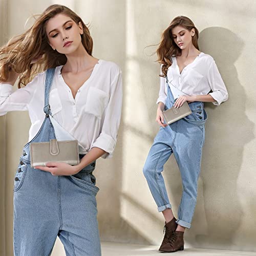 • 【Oil Wax Leather Wallet】 -Top vegan leather with waxing and oiling treating, smooth zipper and gold hardware, make this leather wallet exquisite. Smooth surface feels like silk, easy to clean. Match three color line quilted design, standing out in the wallets for women.