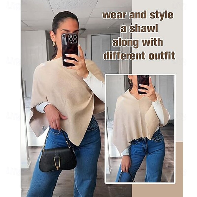 $24.99 - Women Capri Poncho Sweater Slimming Fit Cropped Versatile Shawl Soft Knit Wraps Cowl Neck Short Tops 2025. Shop for cheap Cape online? Buy at lightinthebox.com on sale today!