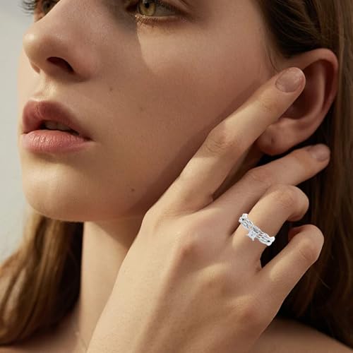 • 【Ring set design】- The bridal ring set includes an engagement ring and a wedding band. The center stone of the engagement ring is a 1ct princess-cut moissanite that sparkles with dazzling light. Both the engagement ring and the wedding band incorporate infinite elements, and the moissanite-paved design enhances the texture and luster of the ring.
