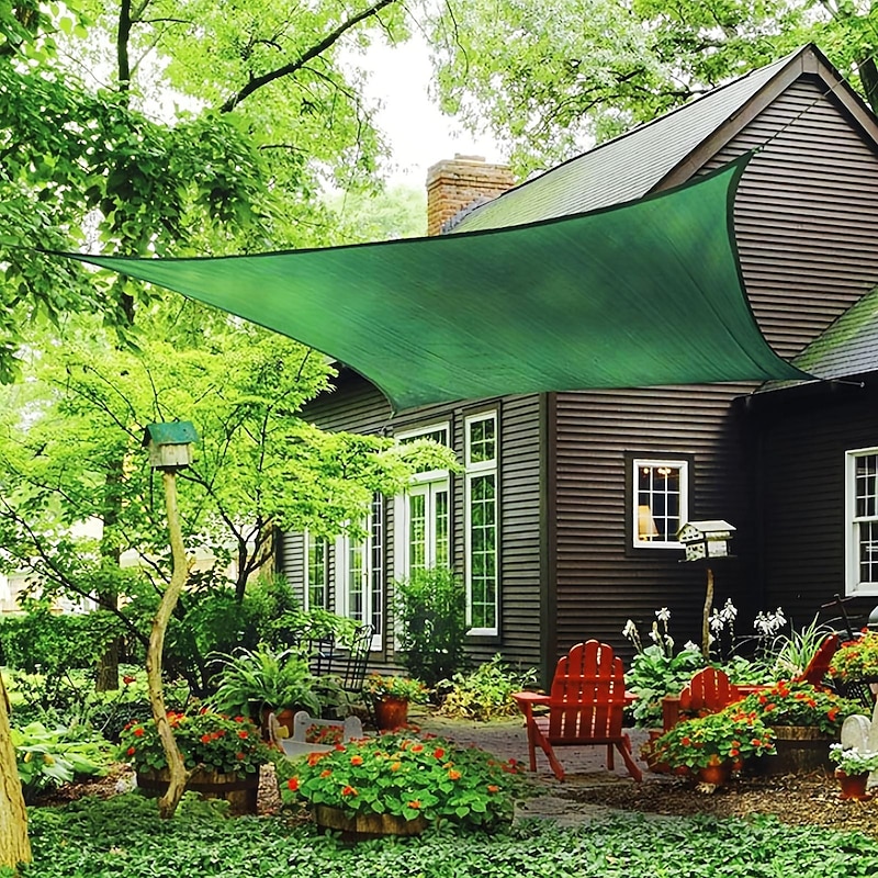 Highlights 1. Versatile use: Perfect for terraces, lawns, gardens, swimming pools, ponds, decks, courtyards, backyards, porches, parks, carports, pergolas, sandboxes, driveways or any other outdoor areas. 2. Maximum shading: Provides 90% shading effect and prevents 95% to 98% of harmful ultraviolet rays, ensuring a safe, cool and stunning terrace experience. 3. High-quality material: Made from 100% high-density non-woven fabric with double needle stitching for durability. Each corner has a durable stainless steel D-ring for easy fastening. 4. Customizable and easy to install: Comes with 8 meters of white rope and can be tailored to your specific needs. Installation is easy, making it a convenient option for any outdoor space. 5. Original product: Our shade sails stand out from the rest on the market due to their high-quality non-woven fabrics, providing superior comfort and durability. Perfect for everyday use. superior materials and excellent craftsmanship ensure long-lasting durability.