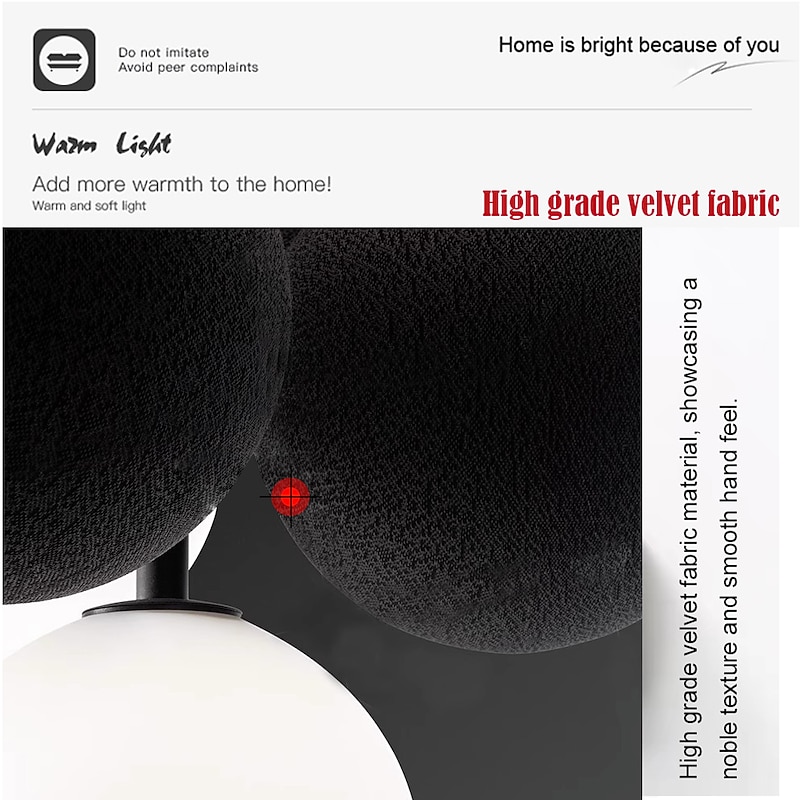 More information about Artistic Style Velvet FabricPVC Simple Found Ball Molecular Pendant Lamp Bedroom Bedside Restaurant Pendant Lamp Creative Molecular Round Ball Pendant Lamp
