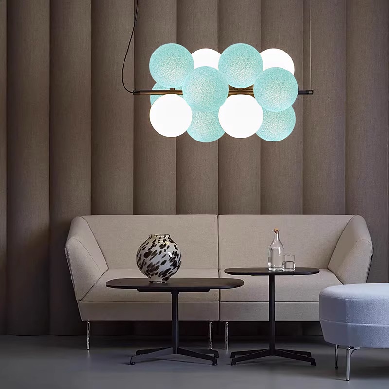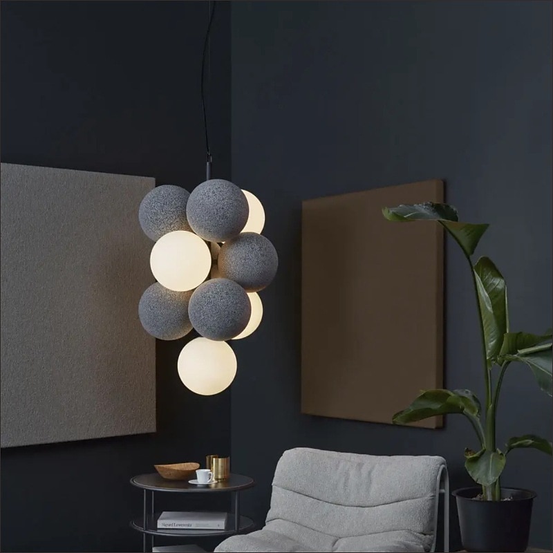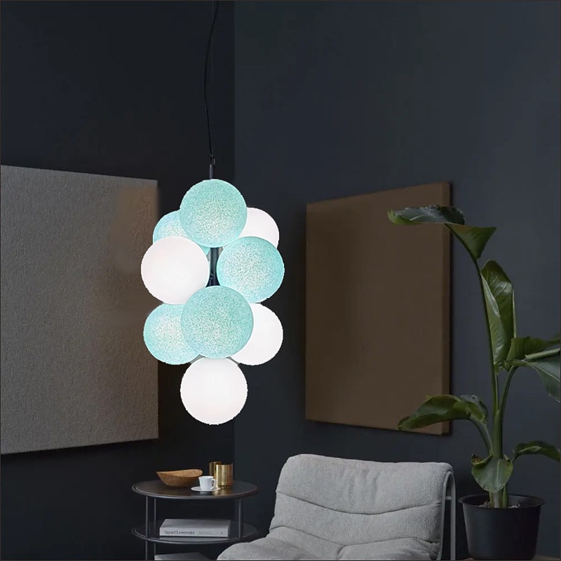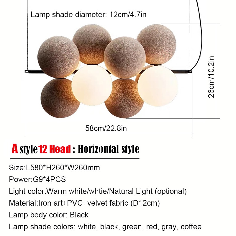 Artistic Style Velvet FabricPVC Simple Found Ball Molecular Pendant Lamp Bedroom Bedside Restaurant Pendant Lamp Creative Molecular Round Ball Pendant Lamp 23