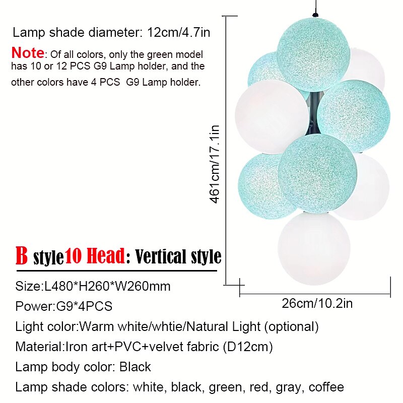 Artistic Style Velvet FabricPVC Simple Found Ball Molecular Pendant Lamp Bedroom Bedside Restaurant Pendant Lamp Creative Molecular Round Ball Pendant Lamp 14