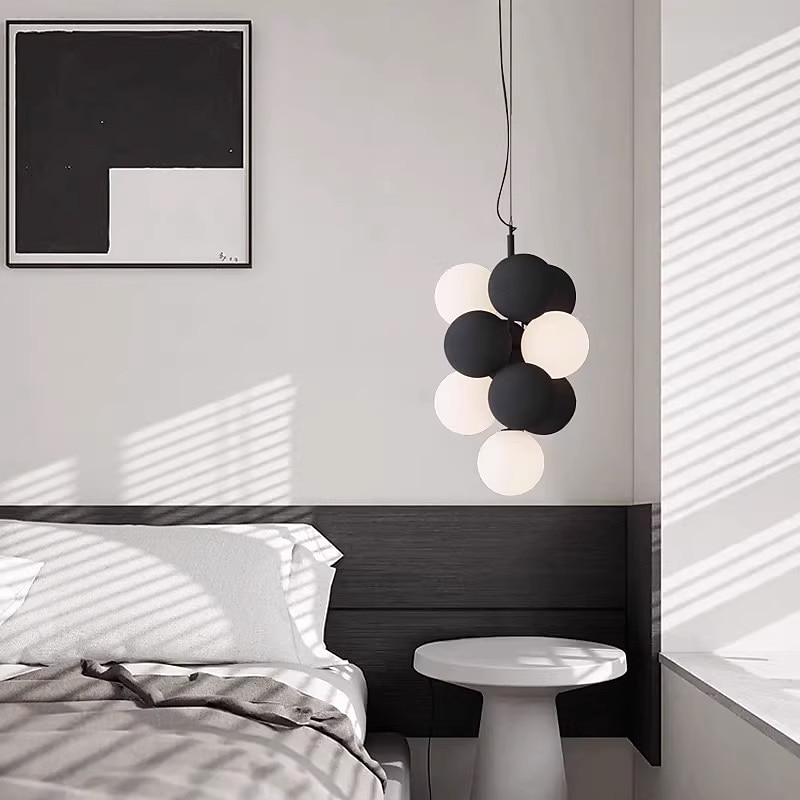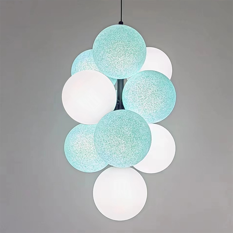 Artistic Style Velvet FabricPVC Simple Found Ball Molecular Pendant Lamp Bedroom Bedside Restaurant Pendant Lamp Creative Molecular Round Ball Pendant Lamp 17