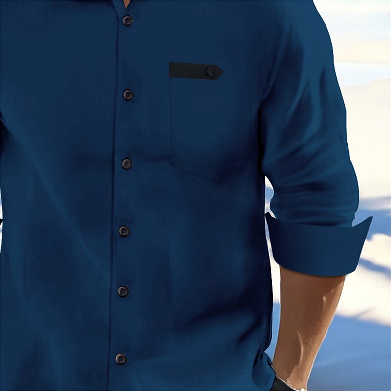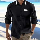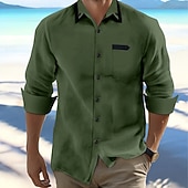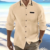 More information about Men's Shirt Summer Shirt Casual Shirt Beach Shirt Button Up Shirt Light Khaki Black White Red Navy Blue Long Sleeve Plain Collar Vacation Daily Clothing Apparel Fashion Casual Comfortable