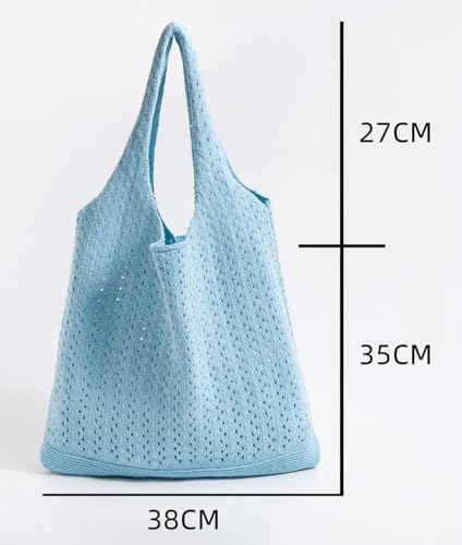 More information about Crochet Tote Bag 2025 Knit Shoulder Handbag Women Stylish Boho Beach Purse Openwork Hollow Weave Chunky Yarn