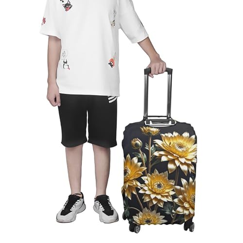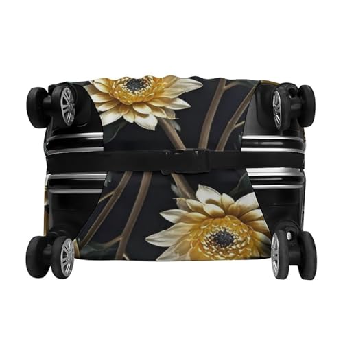Gold Flowers on Black Printed Luggage Cover Protector, Fits 18-32 Inch Luggage