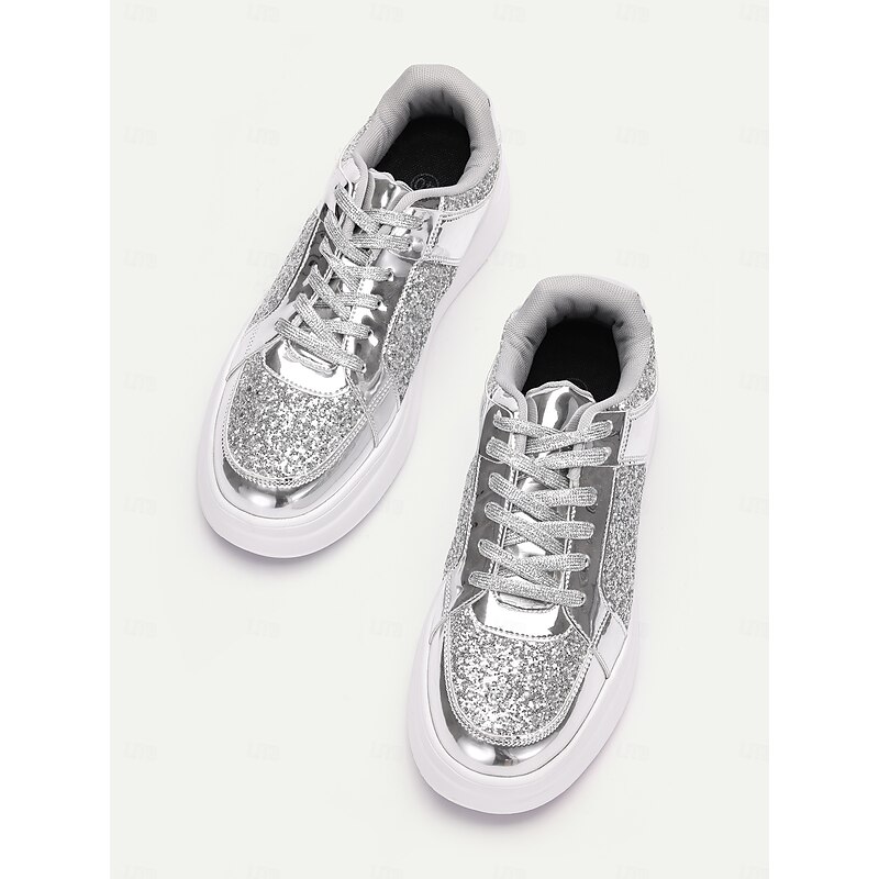 Women's Silver Glitter and Metallic Sneakers – Trendy Lace-Up Shoes for Parties and Casual Wear 20