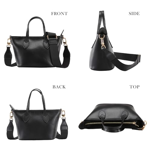 • Premium Materials and Eco-Friendly Choice: Crafted from Eco leather, lined with textile, and accented with gold-color hardware. The classic black color maintains the timeless appeal of the tote bag. By choosing Eco leather, this tote purse appeals to eco-conscious consumers seeking sustainable fashion. With its blend of style and functionality, this mini tote makes a perfect gift. Whether you're heading to work, running errands, or going out for casual outing, this tote adapts to all occasions.