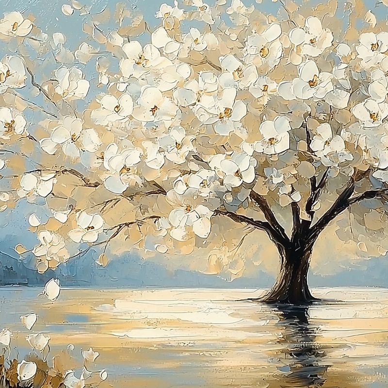HOT ! Handmade Original White Tree of Life Painting Oil Painting On Canvas Abstract Blooming Big Tree Wall Art for Home Decor With Stretched Frame/Without Inner Frame Painting
