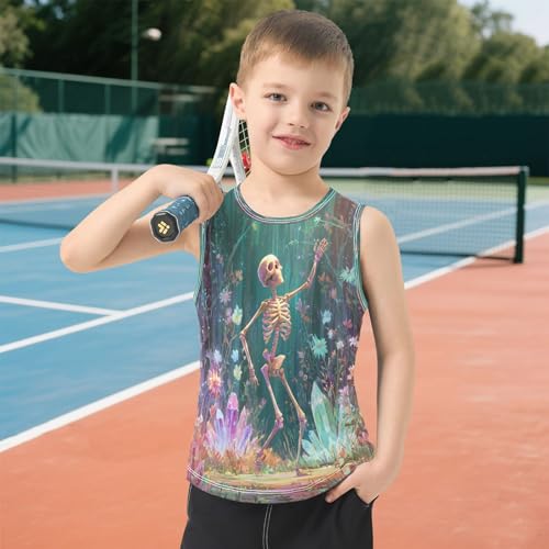 Skull Flower Teal Boys Tank Tops Toddler Boys' Assorted Sleeveless Tank Tops for 3-15 Years,3T 4