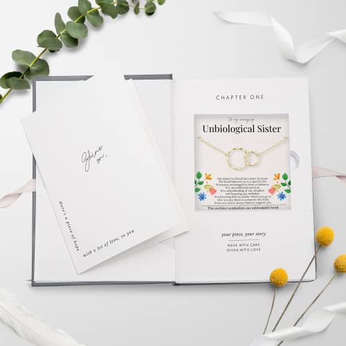 • UNBIOLOGICAL SISTER GIFT: This necklace is an ideal gift choice for your bonus sister for any special occasion: Birthday, Christmas, Wedding, moving away gift or just because. Included with care instructions, it arrives beautifully packaged with a blank greeting card, making it a meaningful addition to any best friend's collection. This best friend necklace embodies the unwavering bond of friendship, making it a cherished best friend birthday gifts.
